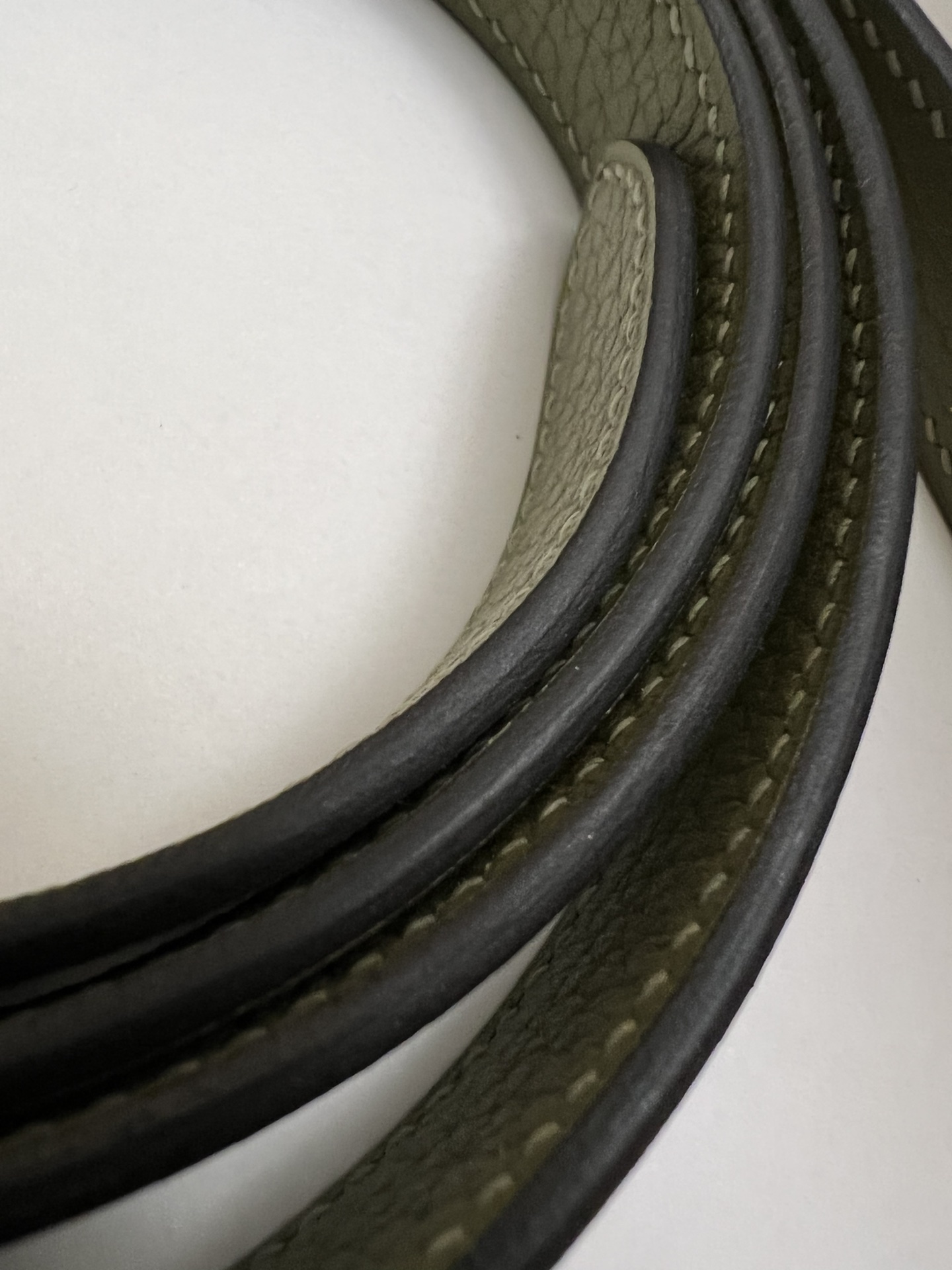 Two short flat leather handles with 10 cm drop